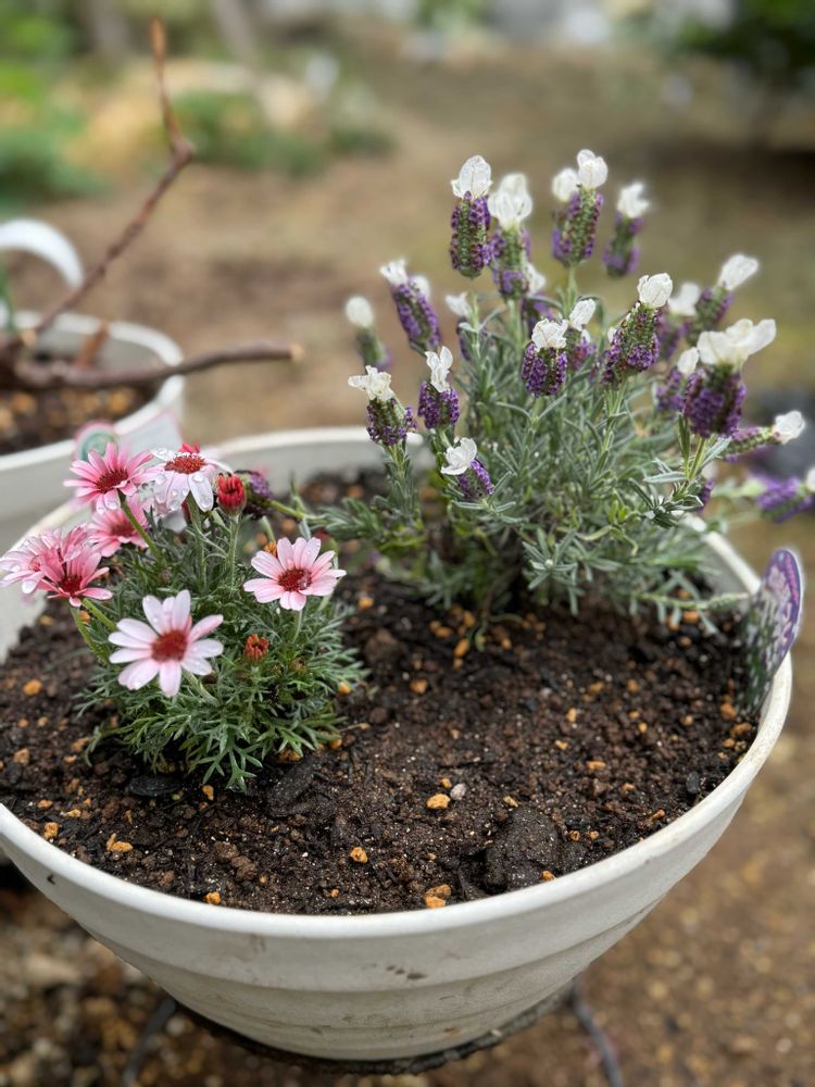 ラベンダーは地植えにしたいところでしたが、スペースが限られているため寄せ植えにしてみました。
