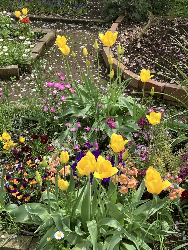 こんにちは 陰性症状なのかとにかくすぐ疲れてしまいます。①チューリップが開き始め黄色は少し元気が出る ②だいぶん葉桜に…写真載せてないけど、北側の窓から城址公園の桜が見れる🌸事に今頃気が付き心が動きました ③少し早い気がするショウブ?あやめ?の鮮やかな紫 休みながら小さな事少しずつ…