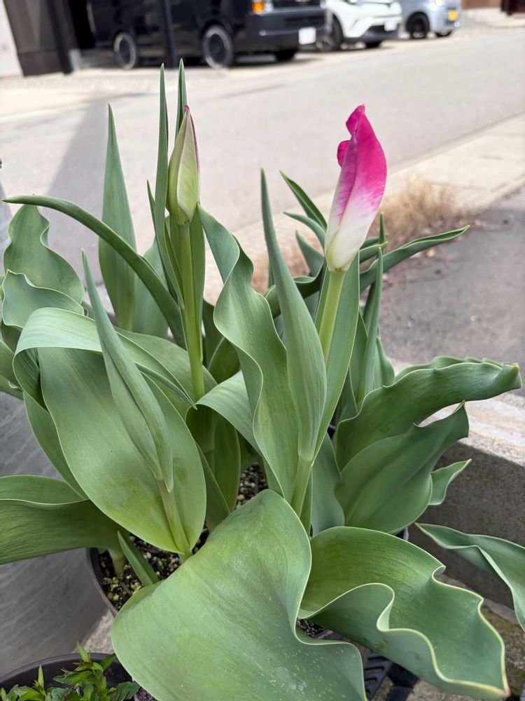 ①チューリップが開花目前になりました‼️