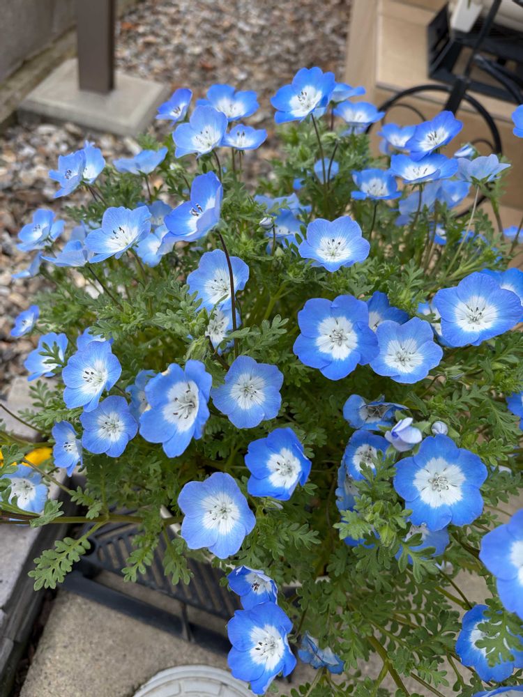 ②植木鉢からはみ出しバク咲のネモフィラ