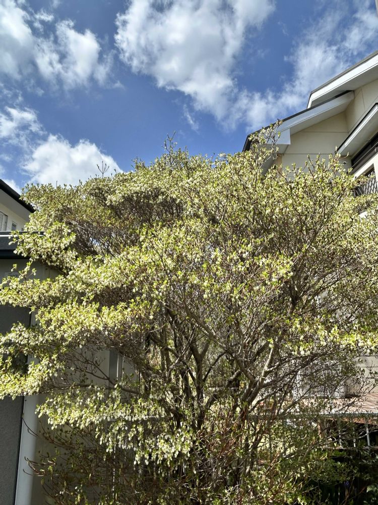 我が家のドウダンも花が咲きました②③④全体はこんな感じですデカい