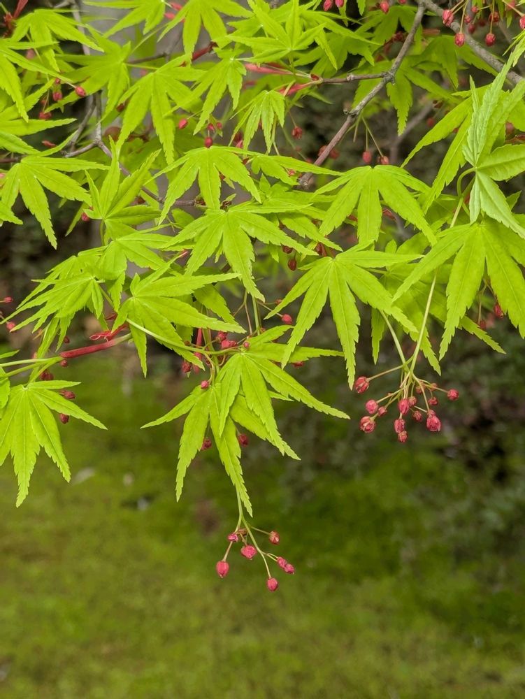 モミジの花は若葉から顔をのぞかせてかわいいよね💚🍒💚