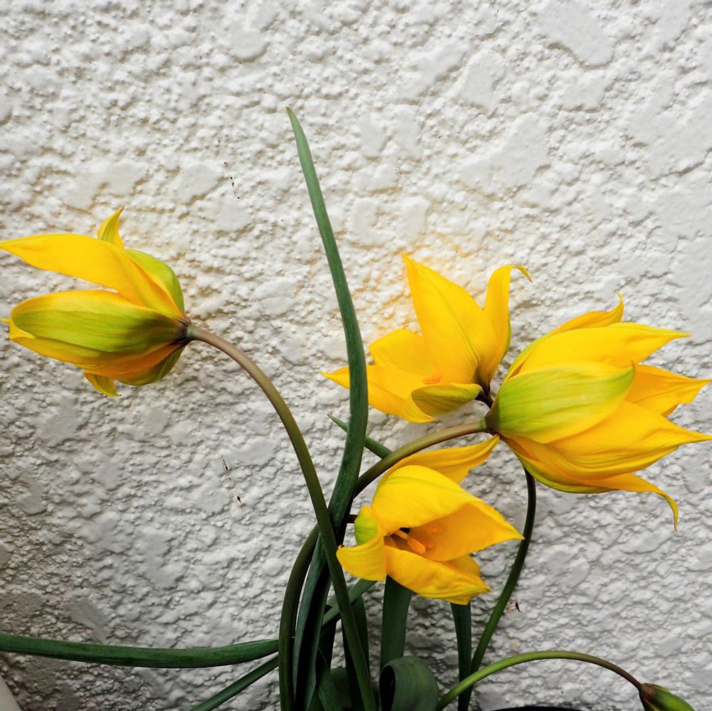 4,5枚目は.原種チューリップのシルベストリス、花茎がアヒルのように横に曲がって咲くのが特徴で、そこが気に入っています😁🦆