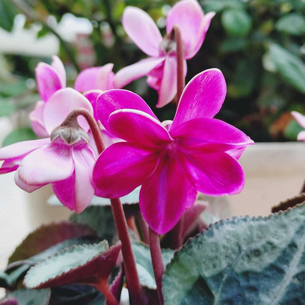 少しづつまた蕾をだし咲き出してます 🧚が舞ってるかのような感じの可愛いシクラメンです 俯き加減に咲き徐々に花びらが反り返ってるよう💓 花粉も出ないお花と!