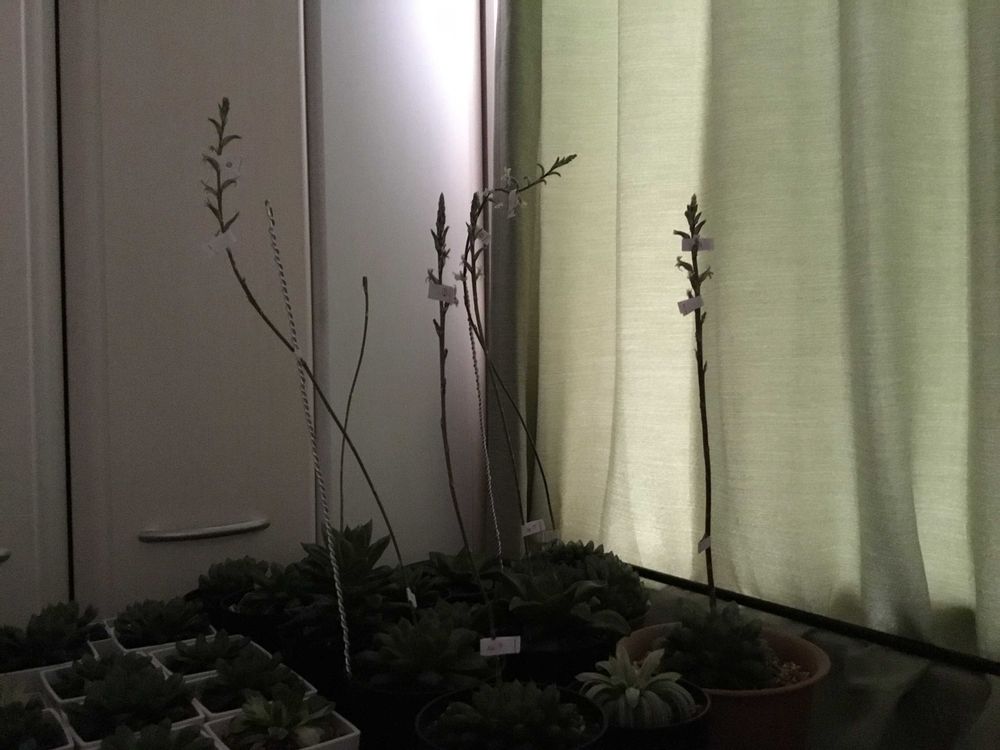 ふとカーテンを閉めたら、、ハオルチアの花芽が不気味だったので撮って見ました(笑)怪しい集団
