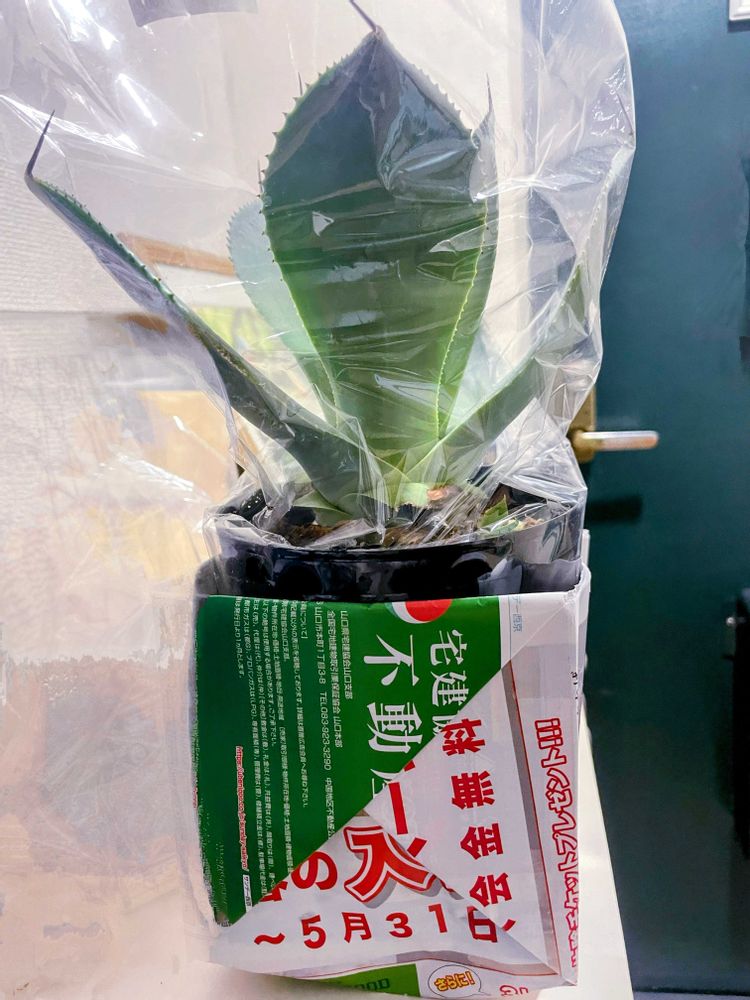 アガベ,JA山口で購入,新聞紙で作った鉢カバーも頂きましたの投稿画像