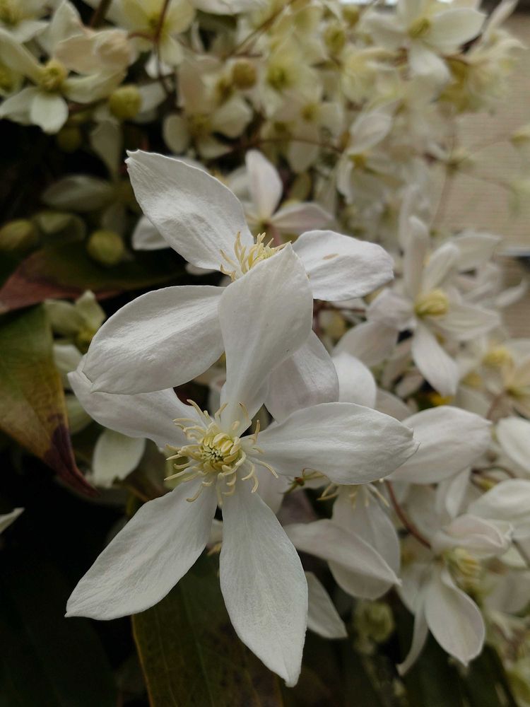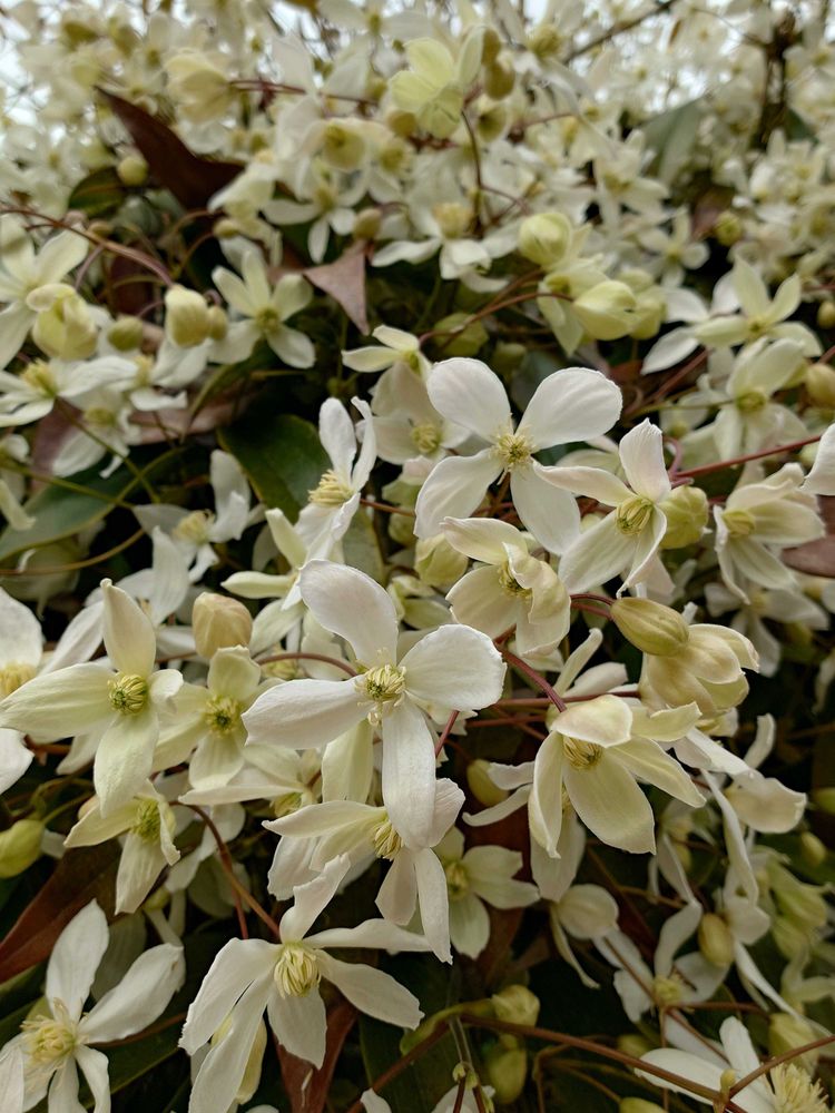 常緑のクレマチス アーマンディが良い香りで咲いてます😊