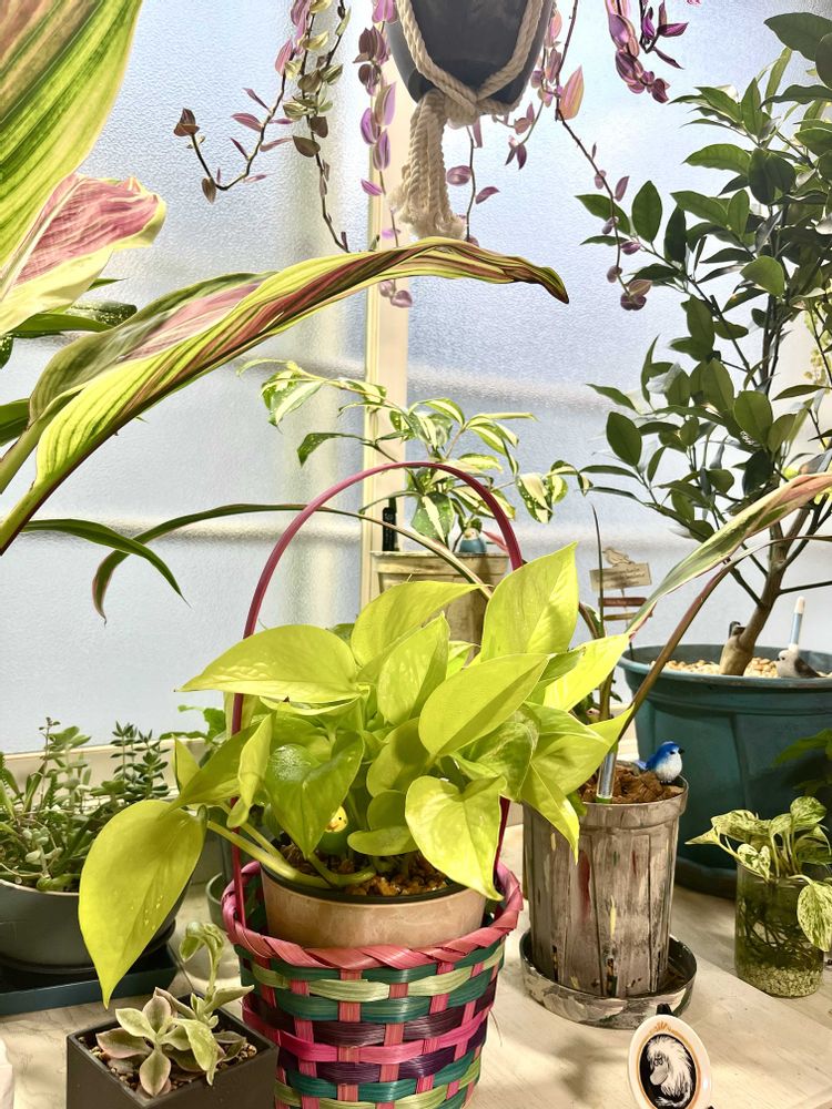 DAISOで買ったイースターの籠にポトスライムを入れてみました