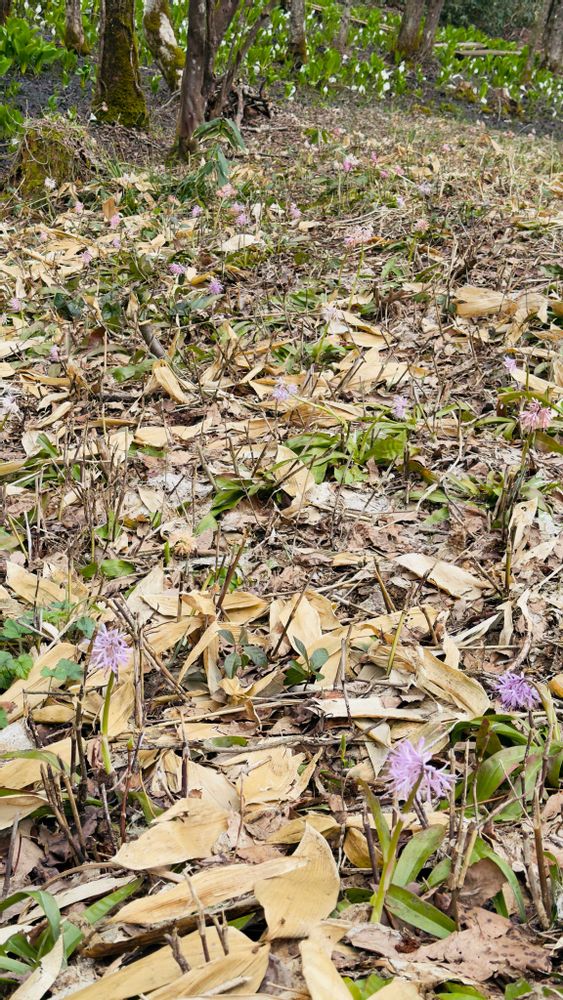 水芭蕉🤍の近くに咲いています💜🎶