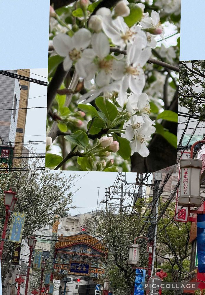 横浜中華街南門通りは今ヒメリンゴの並木通りが満開です。もう少しすると赤くて小さいヒメリンゴがなります。シドモアザクラの反対側に昨日まで満開の赤いツバキの大木が今日伐採されていました。桟橋を作る計画は知っていましたが、木はそのままだと思ってました。毎年楽しみにしてたのに。我が家に今朝咲いたバラを眺めて仕方ないと心を慰めました。