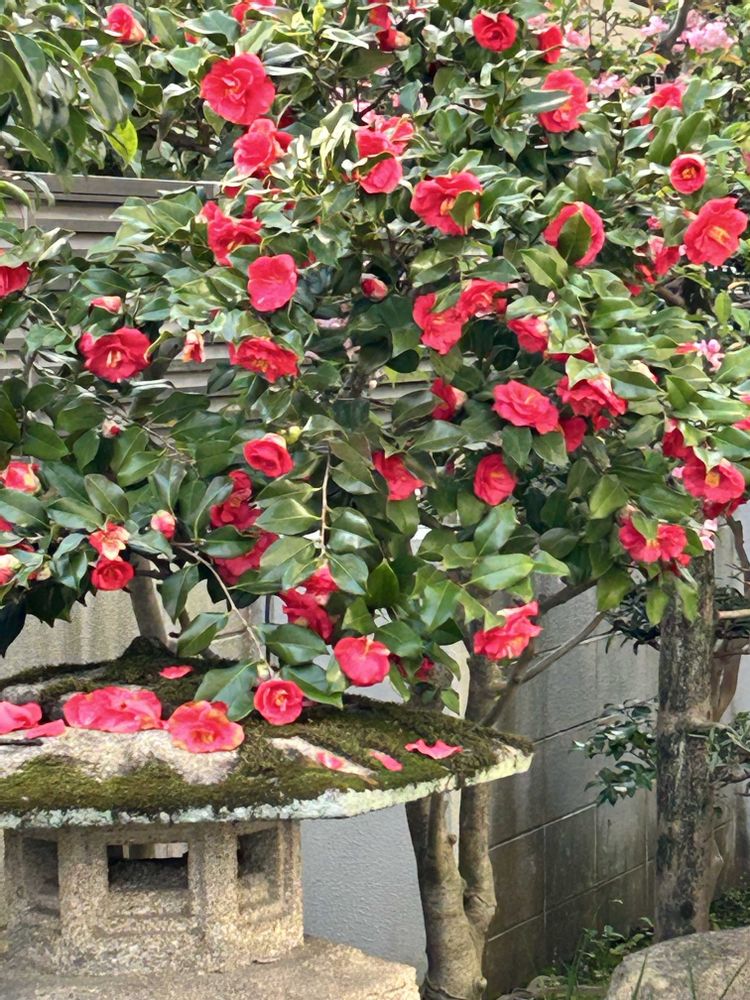 庭の椿とハナカイドウ