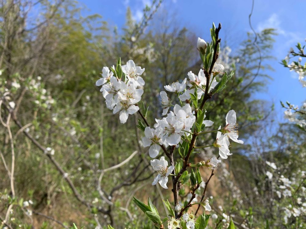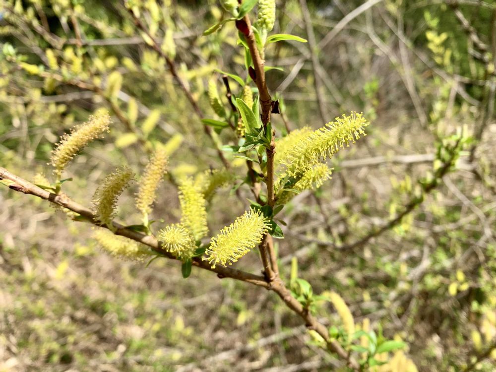 お山のパトロールで😀ウグイスカグラ😀ユスラウメ😀何ヤナギかな❓😅ニワトコ😀隣村の枝垂れ桜😀が咲いていました😊