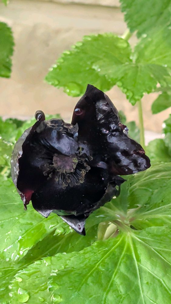 昨日の雨と風で、傷んだのでカットして三つ葉☘️の葉の上に乗せました。