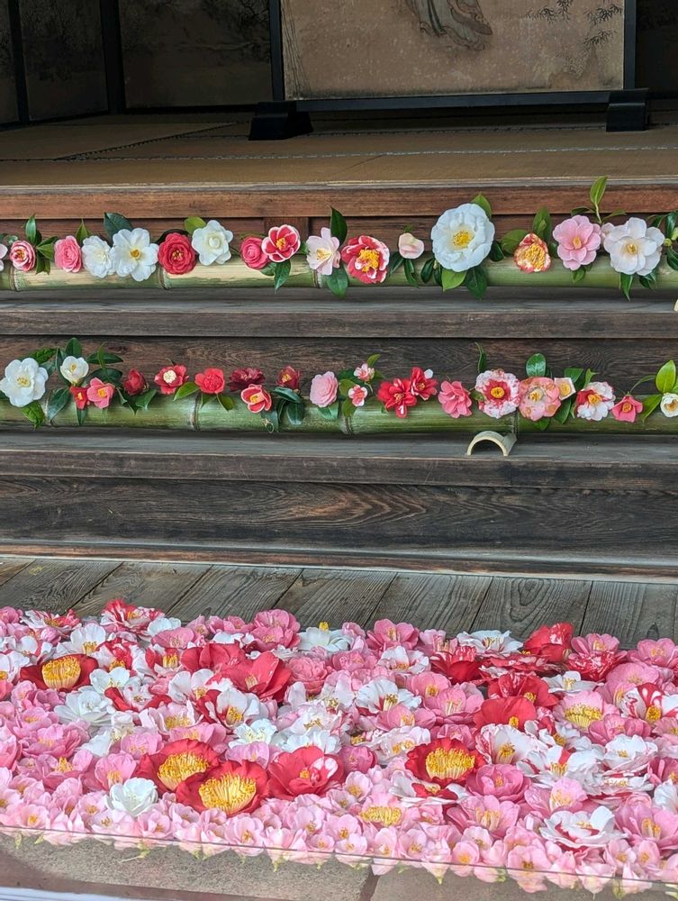 ①〜⑤4月12日まで開催中の春の特別拝観で、庭園に咲き誇る椿のお花が美しかったです🤩💖