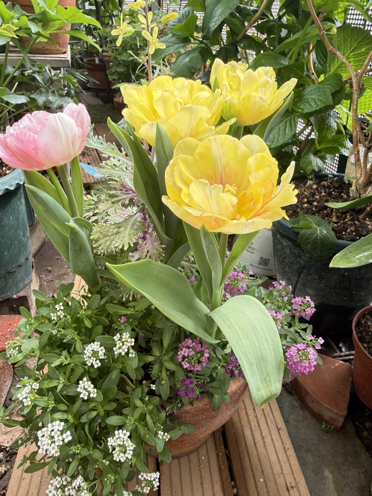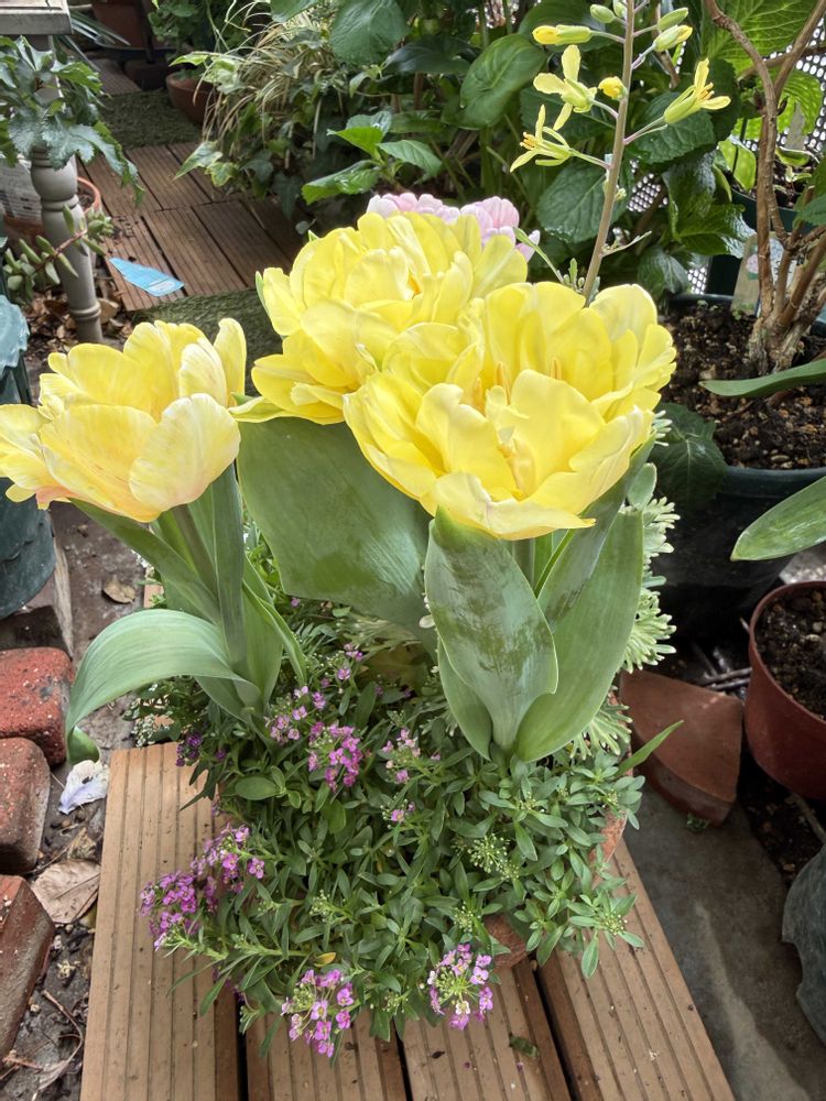 毎年、八重咲きの球根を10個まとめて密植してましたが、去年の秋、手に入らずいつもと違う雰囲気のものを選びました。