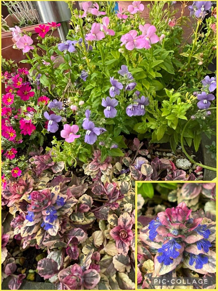②アジュガ『バーガンディグロー』🤍🩷のお花💜が咲き始めました。