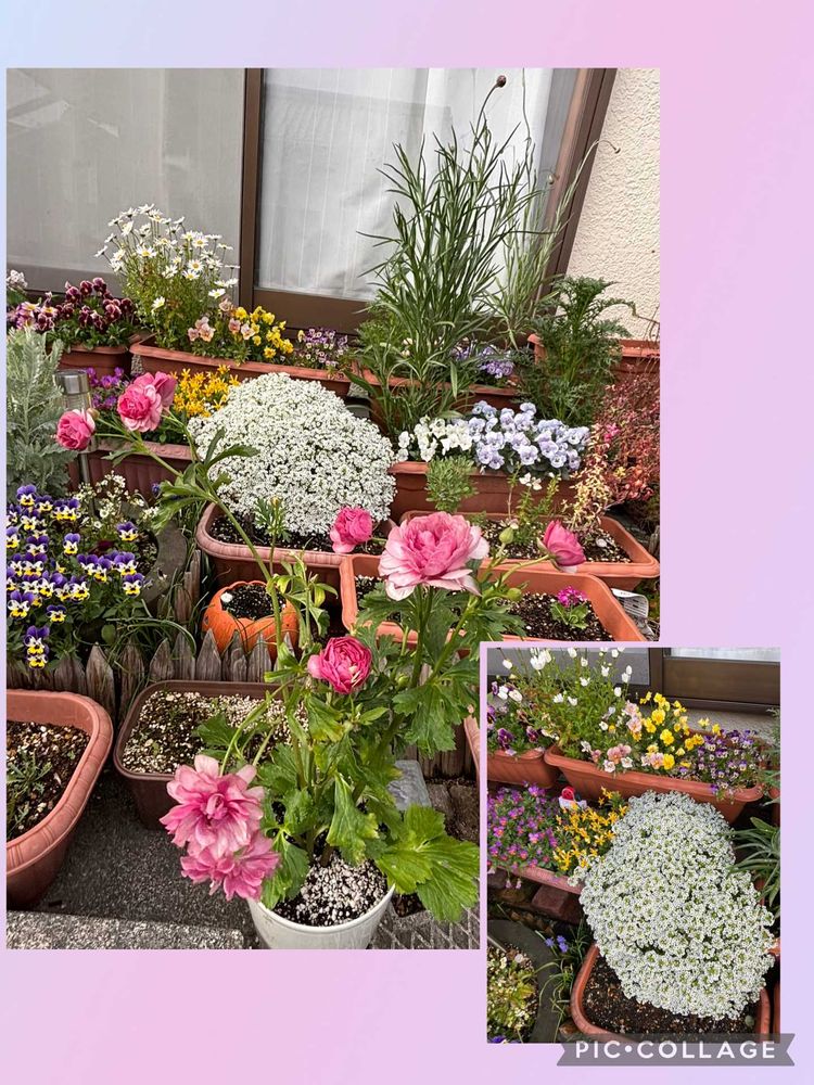 周りのビオラ達💜🤍💛🩷もモリモリ咲いています。