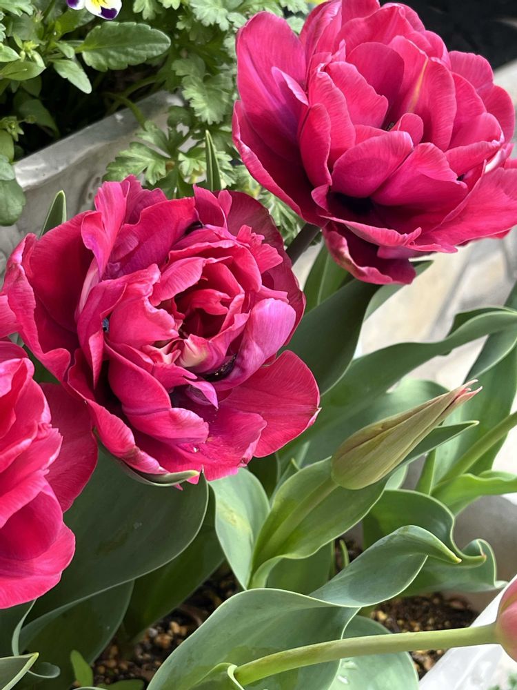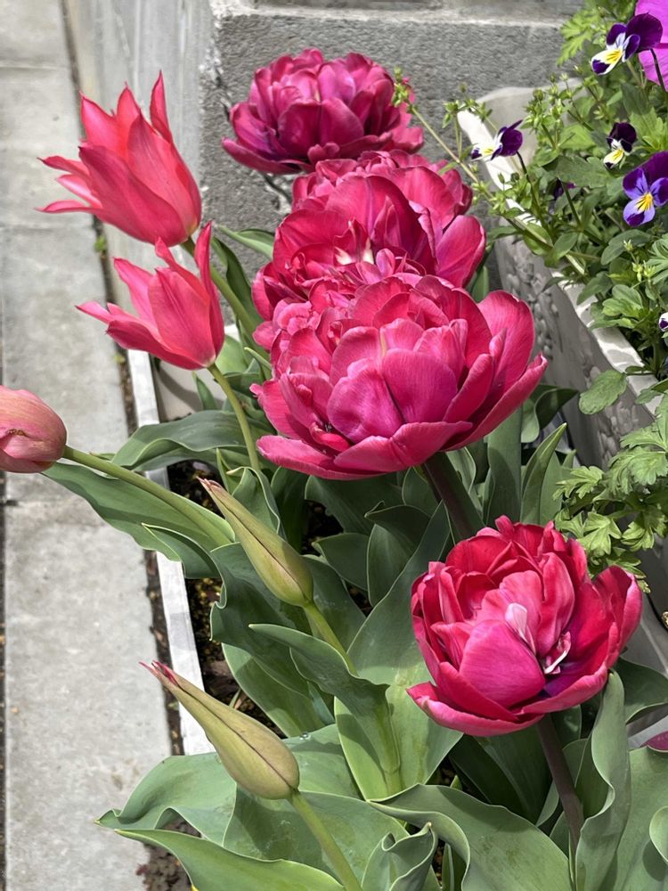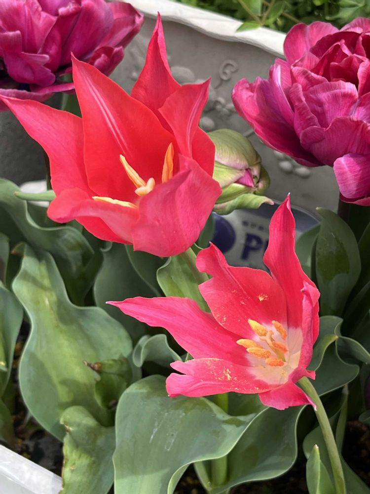 チューリップ🌷が咲きましたが、ラベルでは紫💜とピンク🩷のはずですが、どちらも思っていた色とは違います😓