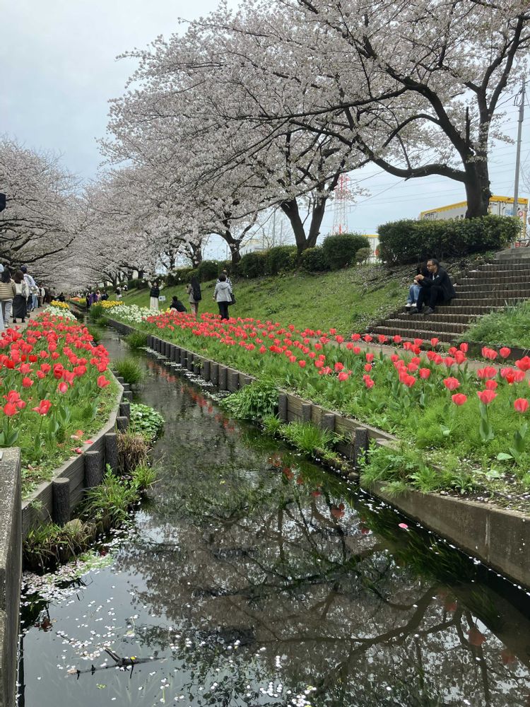菜の花もあったのですが、チューリップ🌷🌷🌷🌷が長い距離で川沿いに植えられていてそれは見事な光景でした✨✨