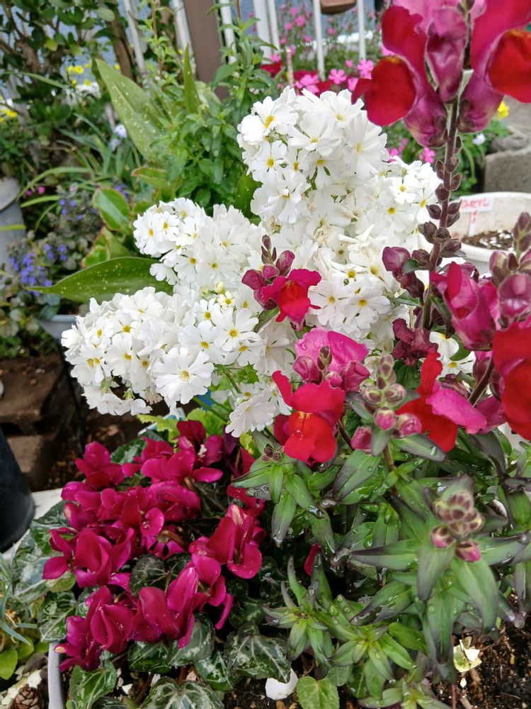 「ガクアジサイ・キンギョソウ・モッコウバラ」