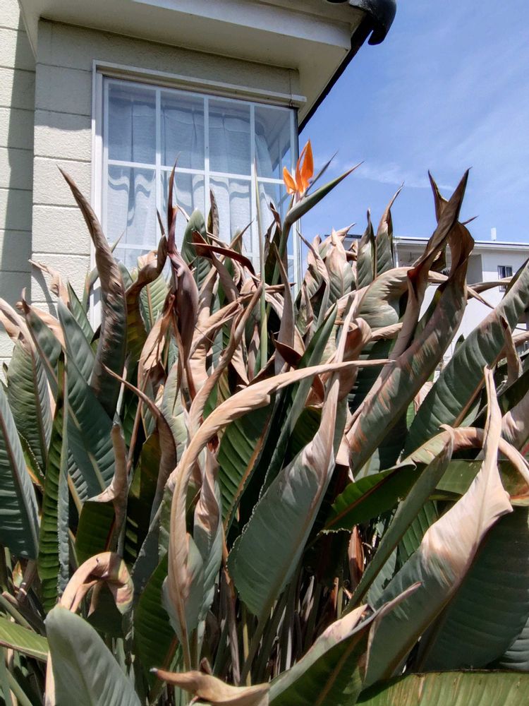 ストレリチア〜気づいたら、葉っぱにかなりのダメージで、、、こういう時はカット✂️しか無いと、チョキチョキ〜かなりの葉っぱがダメになったけど、凄く強くて復活するんです〜もう何年も我が家に住み着いてます〜昨夜は庭仕事したので早く爆睡しました〜ありがとうございます💗💕