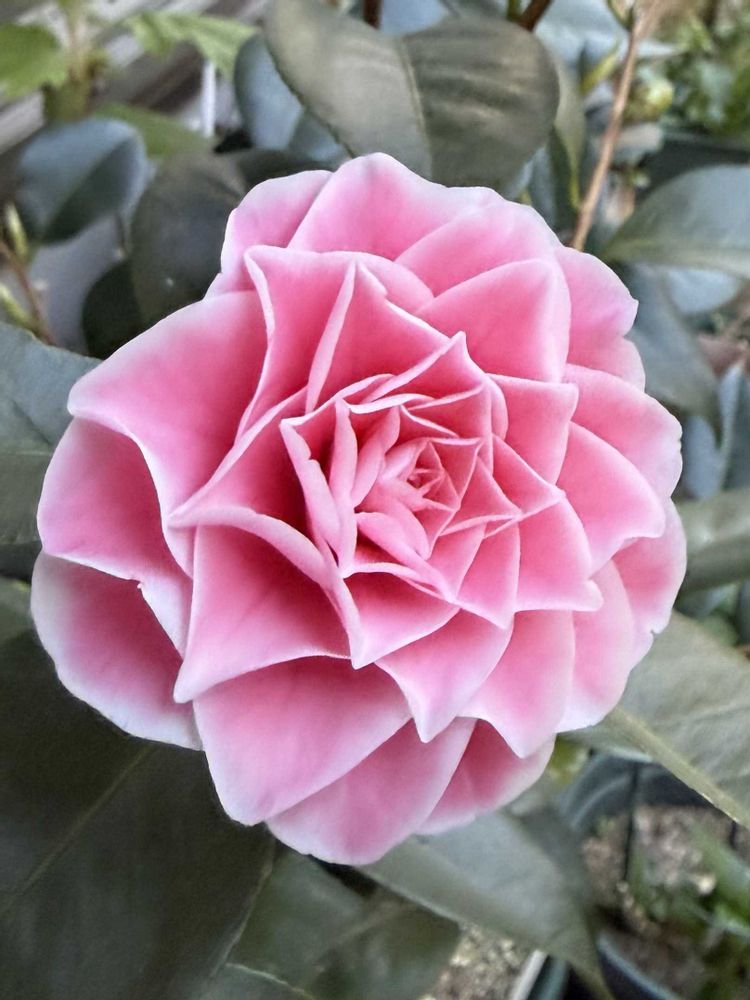 椿・まほろば🤍🩷ちょっと弱々しいけど、何とか咲いてくれました🙌