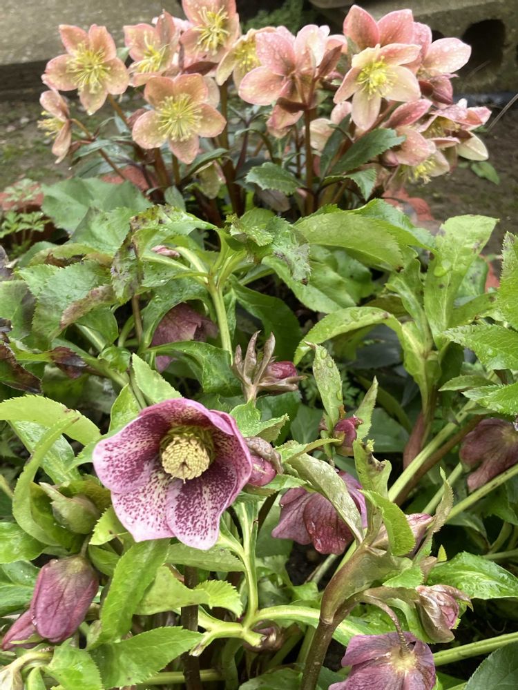 手前のクリスマスローズ🥀友達から頂いて花を咲かせるまで5年…今年初めて見て感動🥺長かったー