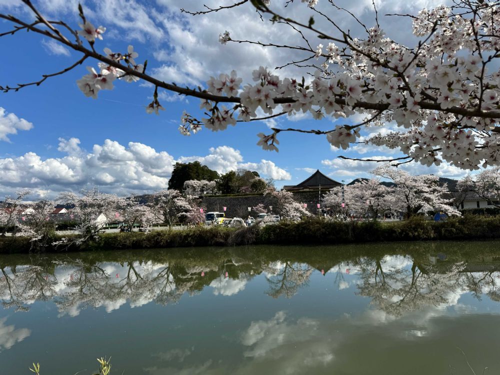篠山城跡の水面に映るサクラ🌸凄い綺麗ですね😍