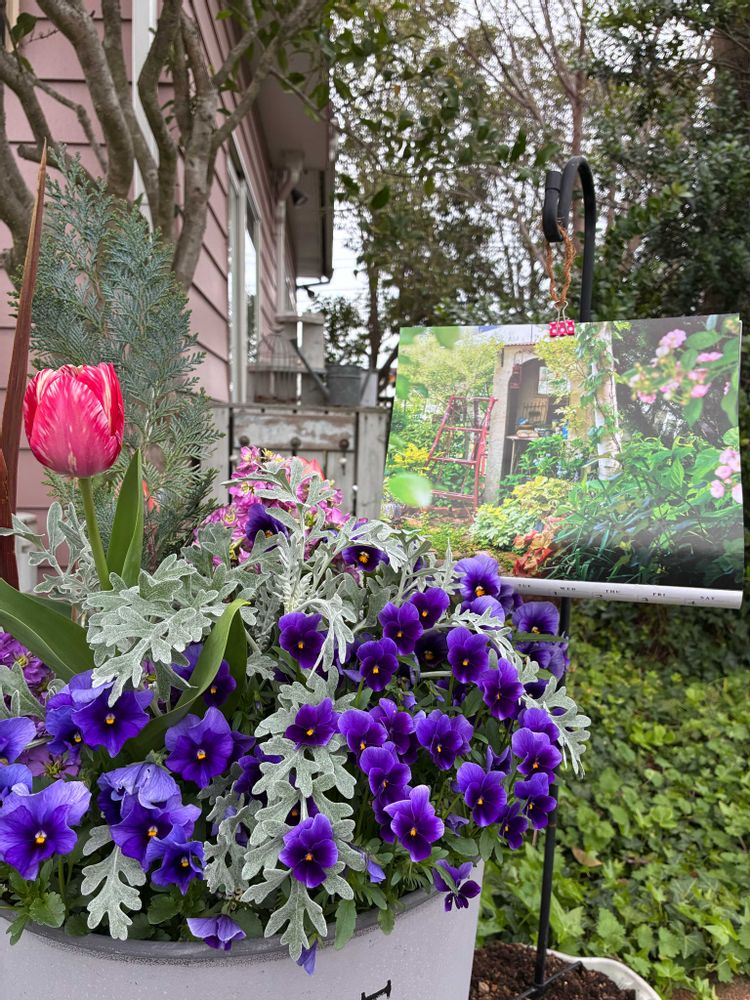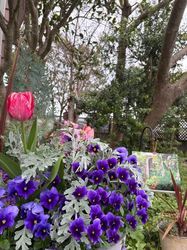 寄せ植えに仕込んだチューリップ🌷