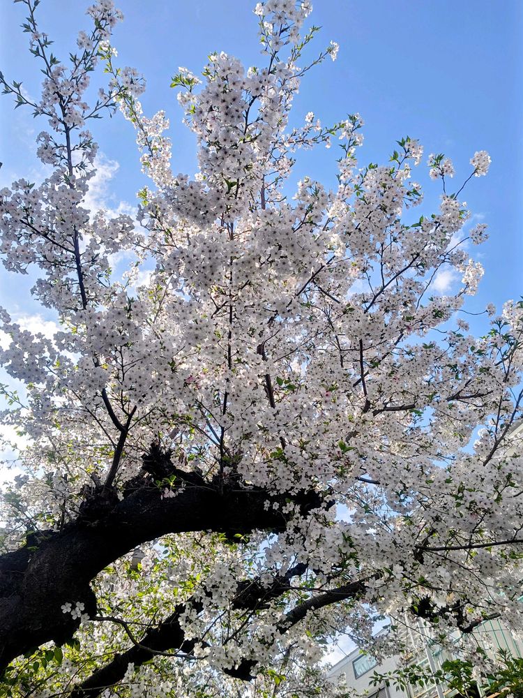 昨日のサクラ🌸。路地の向こうに見えた桜。民家の塀の中から伸びた大木🌳。太い幹。年季を感じる枝ぶりでした。
