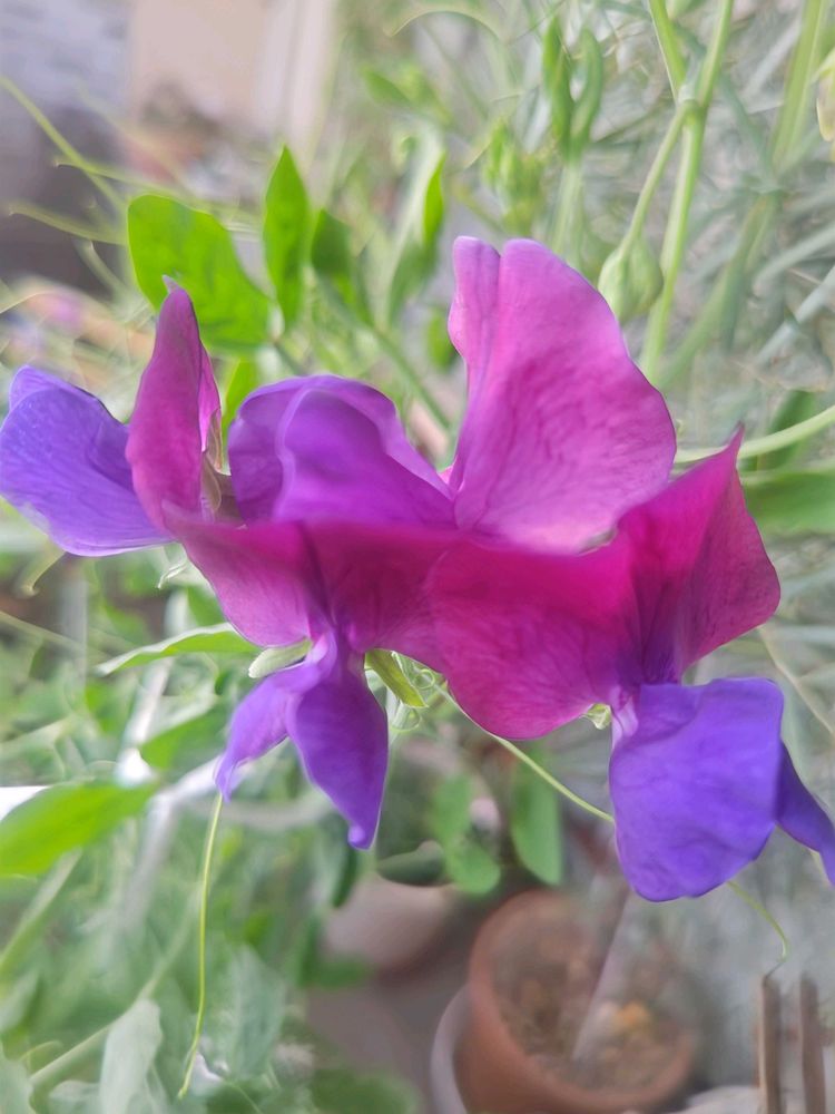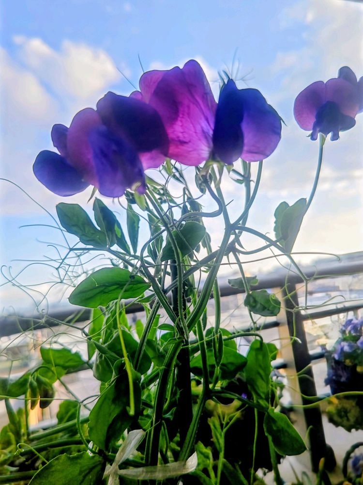 2枚め、3枚めは種蒔き苗を貰ったスイートピー。大きくなって花を咲かせました🙌🙌。まだまだ蕾がいっぱい、楽しみです✨。