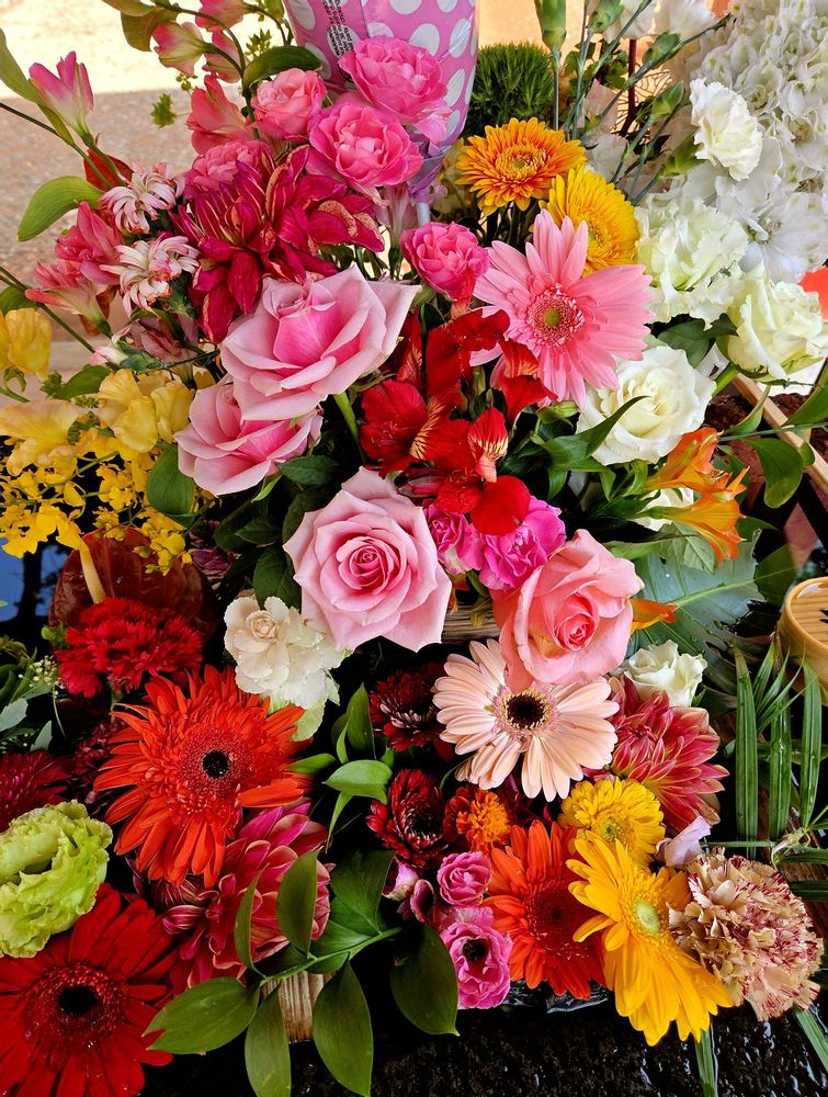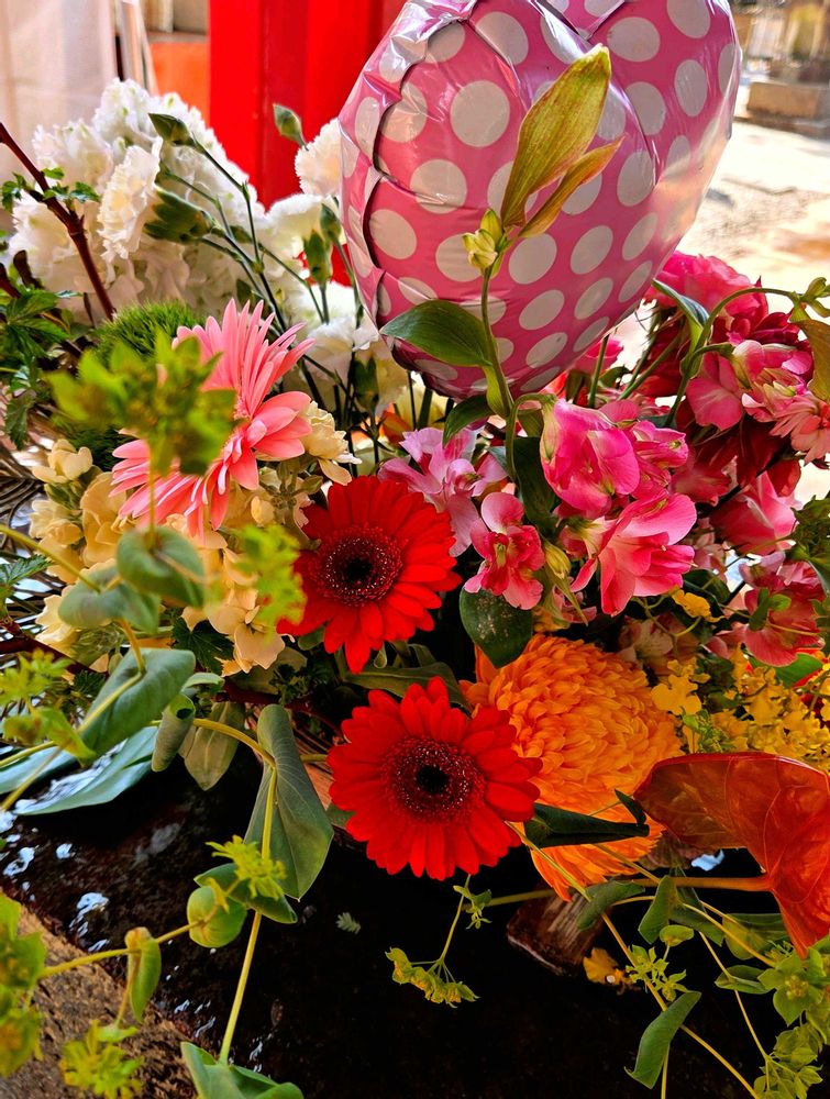 神社の花手水🌹🌼🏵