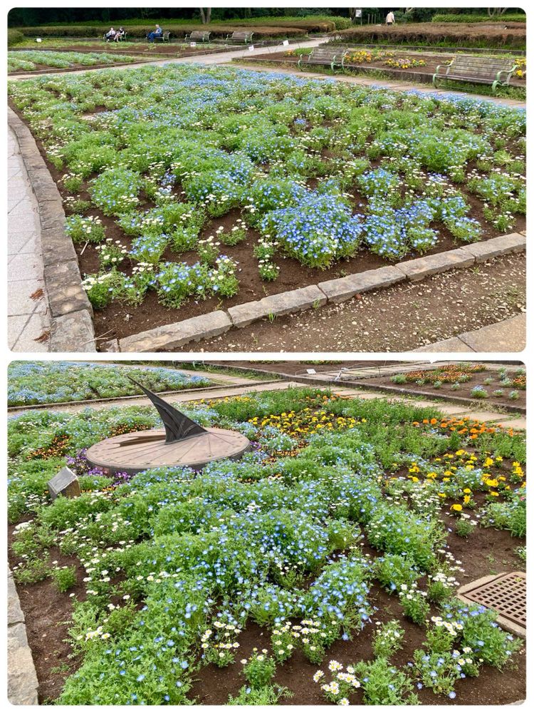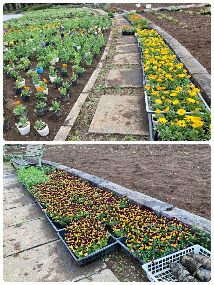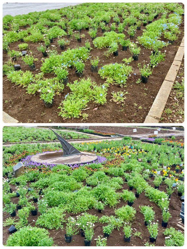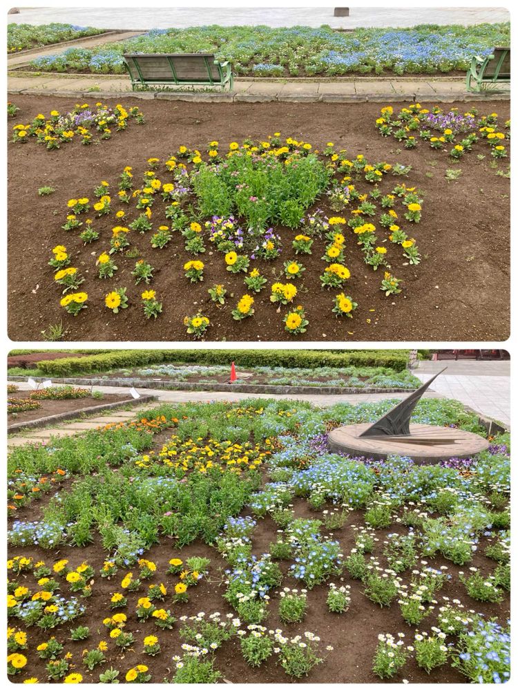 公園の花壇に「ネモフィラ」の種を蒔いたので、長いこと花の無い時期が続いていたけど、発芽率が悪いために他の花を足して新たな花壇作りを始めた。
