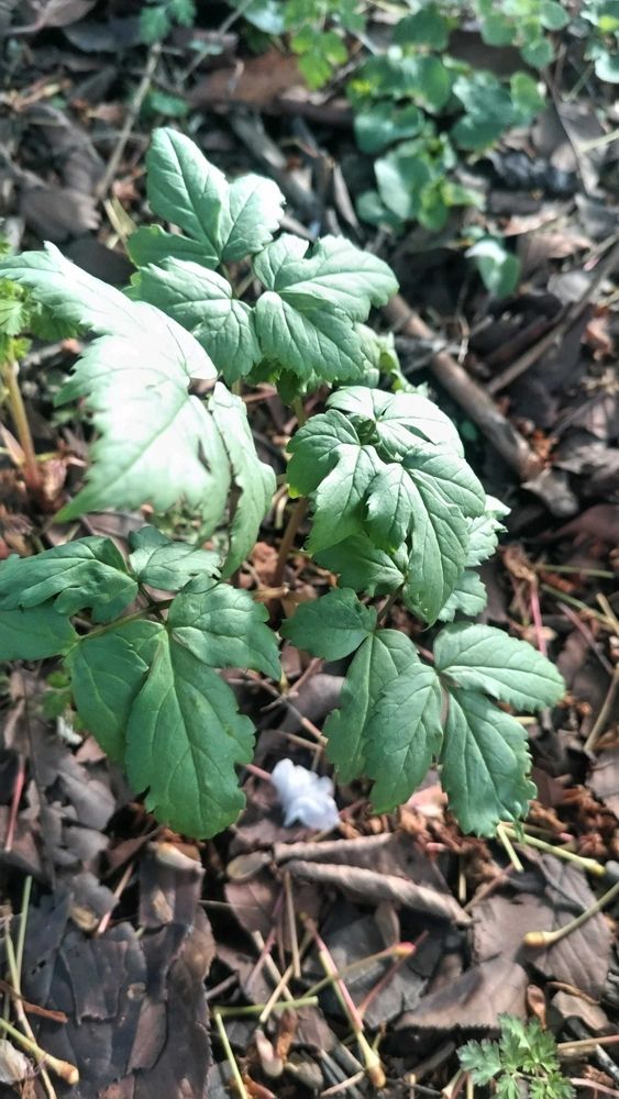 レンゲショウマも出てきてくれた。サクラの下はあえてなにも植えない場所にしています。