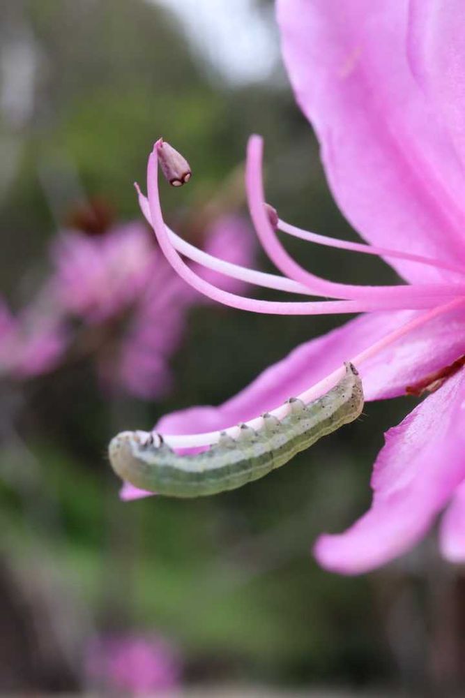 よーく見たら小さな青虫くんがいました