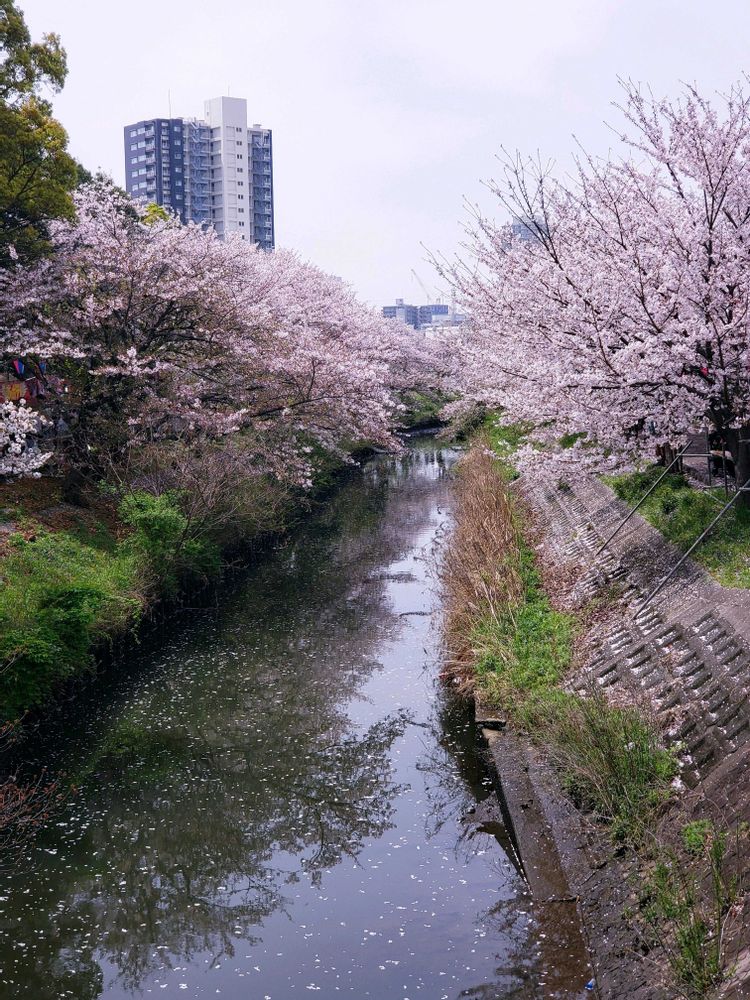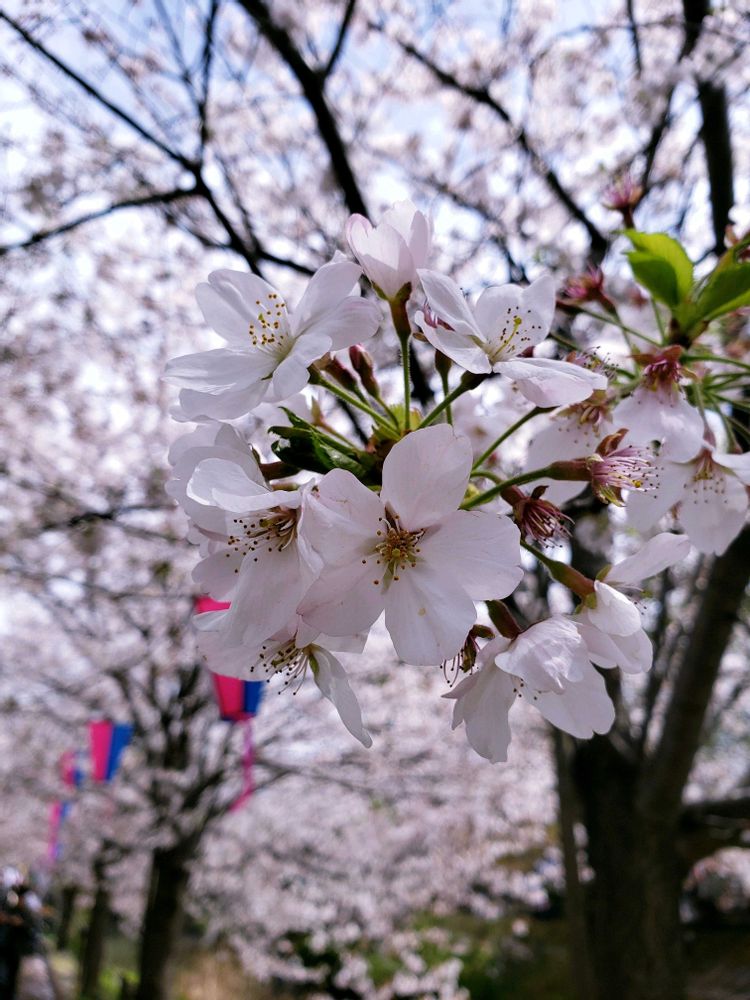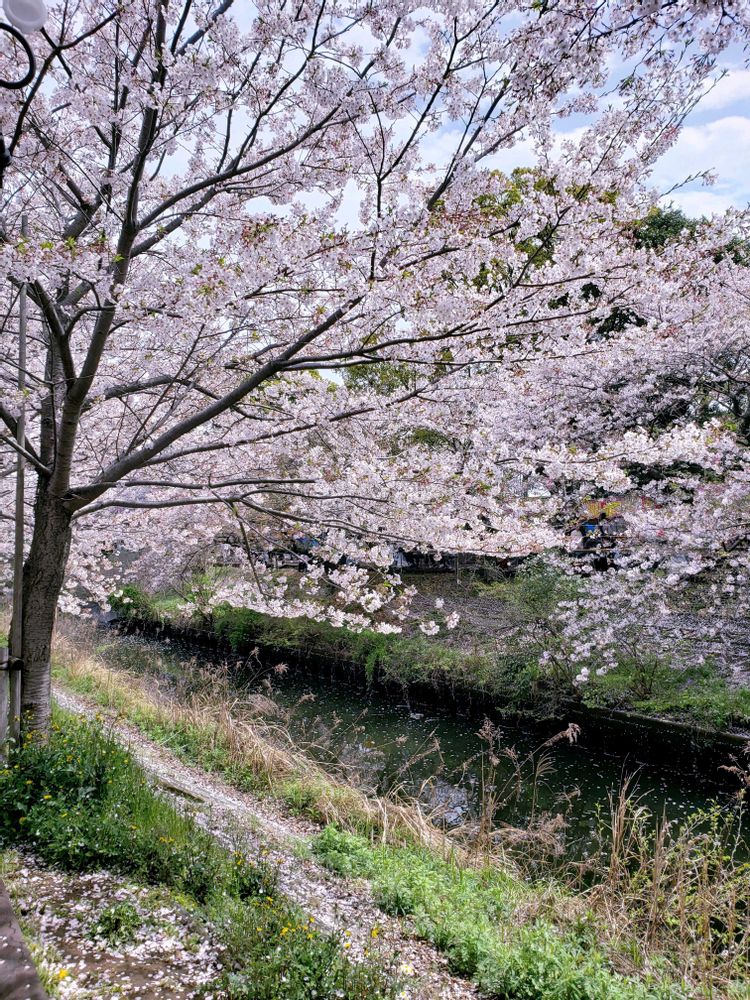 川を挟んで左右にズラリと桜並木が続いていて、良いお天気の中のんびり散策👨👩👧👧🎶