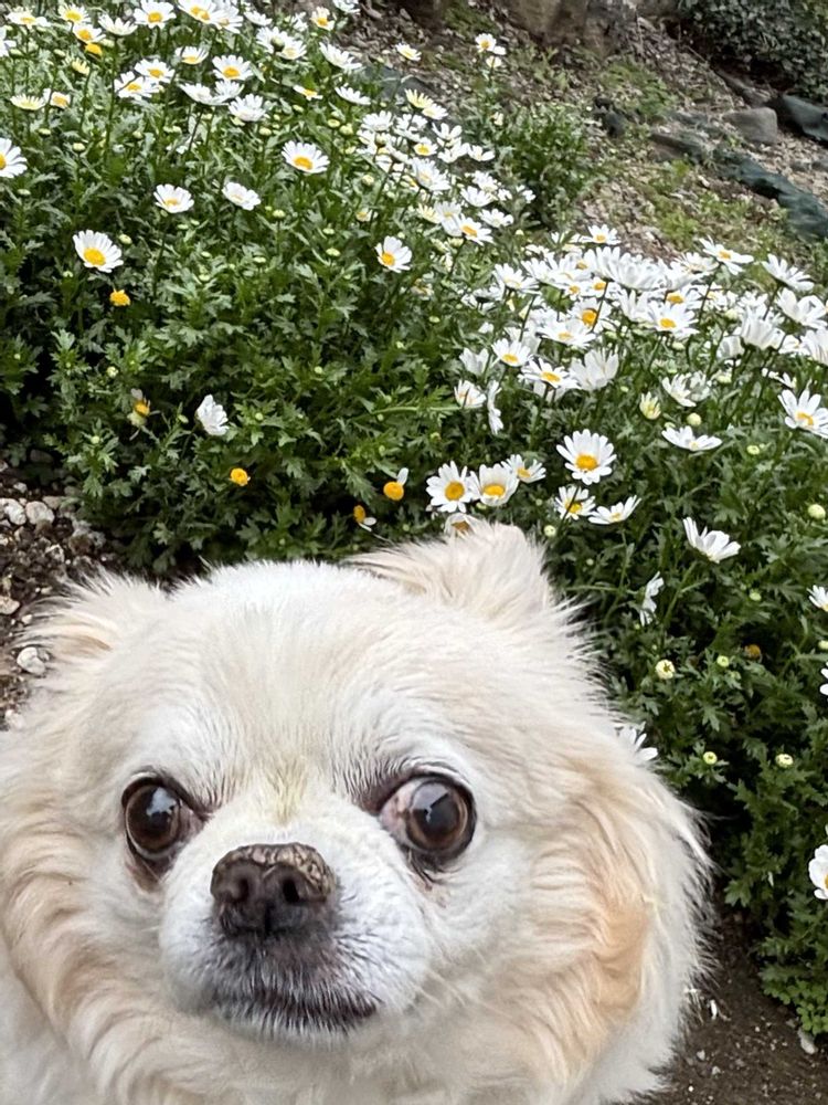 庭で写真を撮ろうとするとミルク🐶が,近寄って来てしまうんです