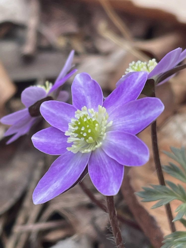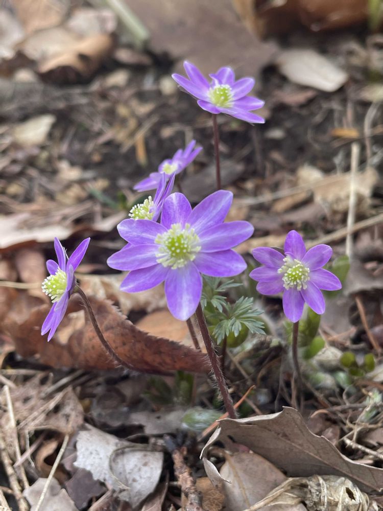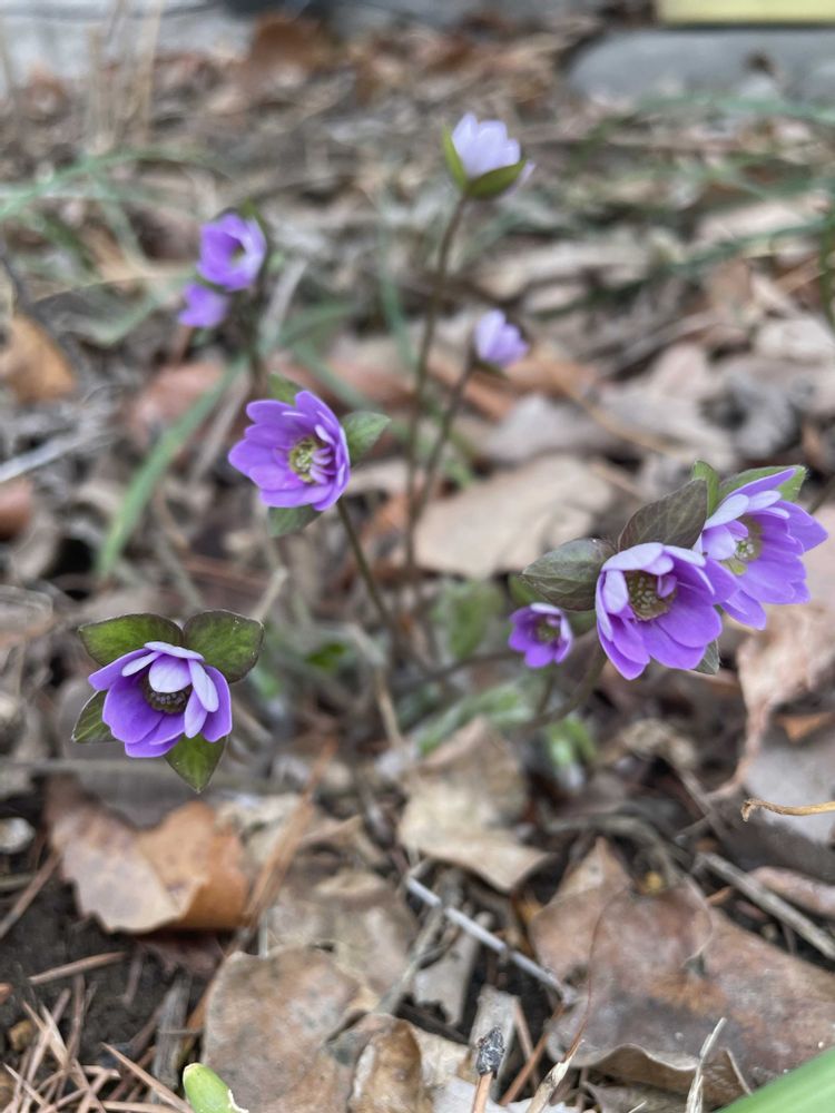 山野草コーナーの地植えの雪割草も咲き始めました💜💜
