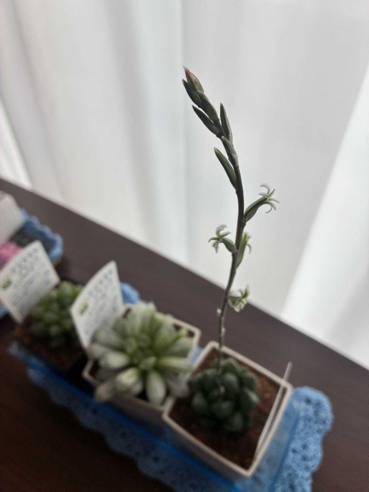 2025年4月にネットでたにたのさんの苗を購入した時におまけでついてきた名無しのエケベリアが面白く育っているので、成長記録を作りました。 この子の名前ご存知でしたら、ぜひ教えてください🙏