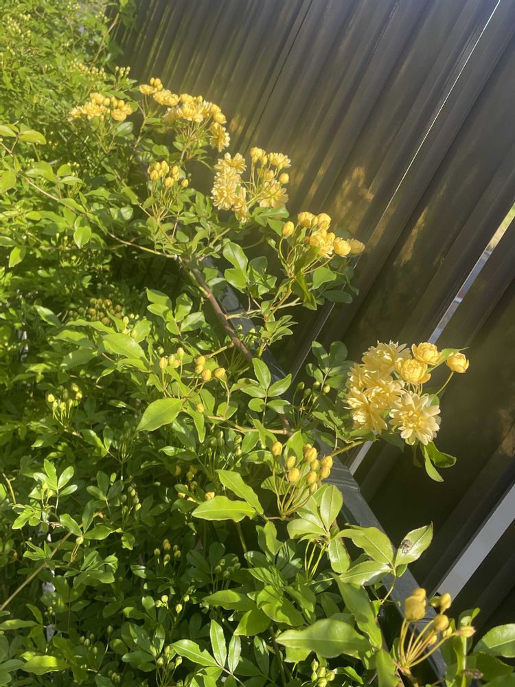 今朝 バラの消毒をしていた時に 見つけました 💛モッコウバラ💛