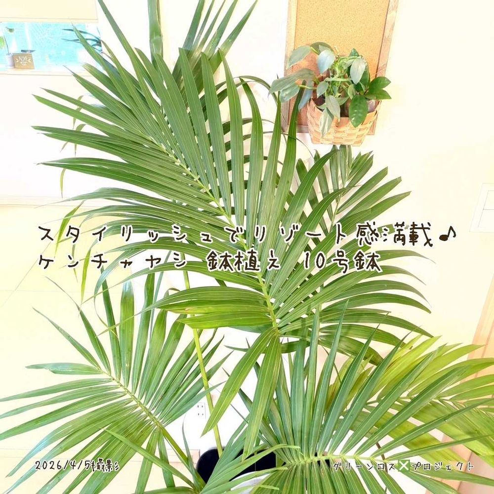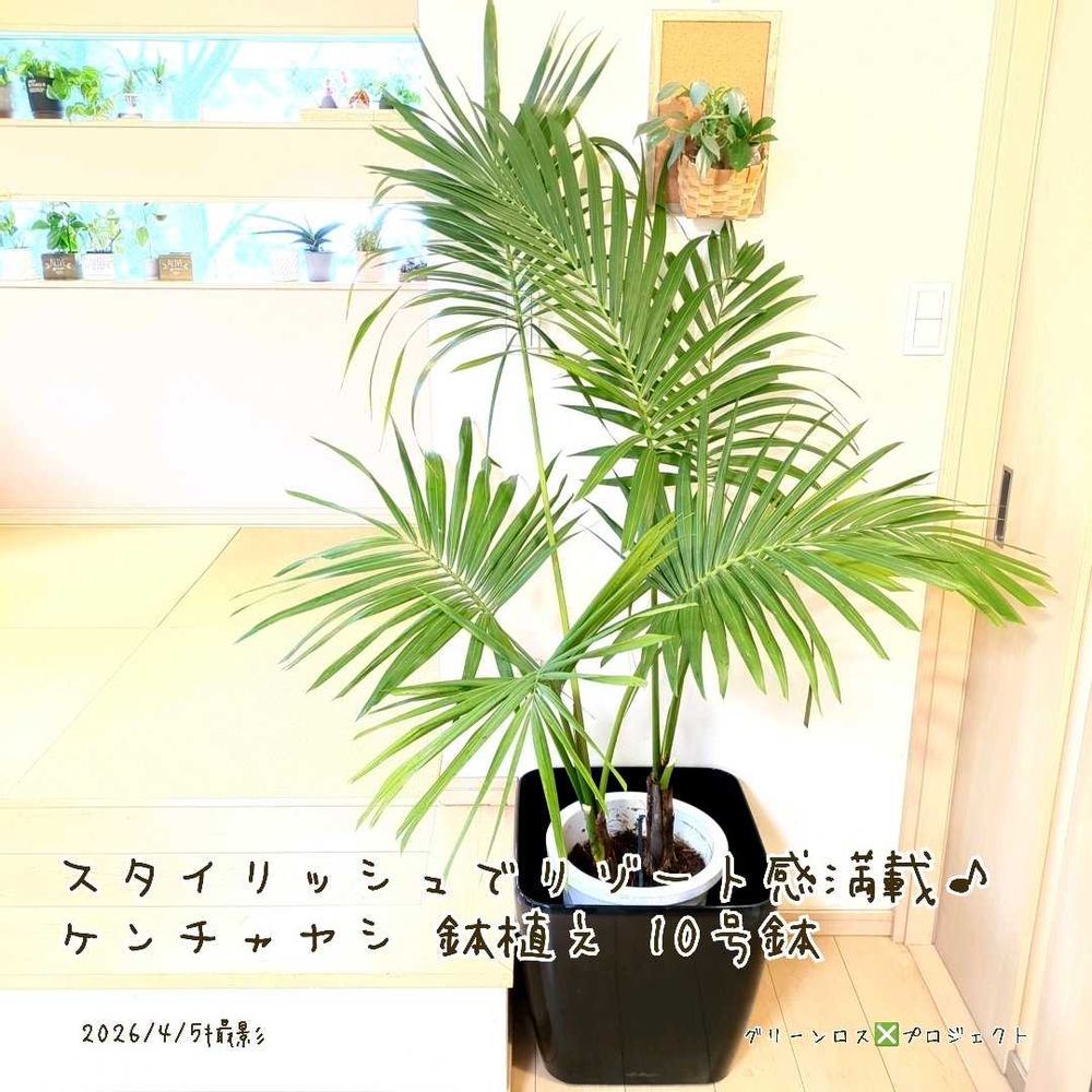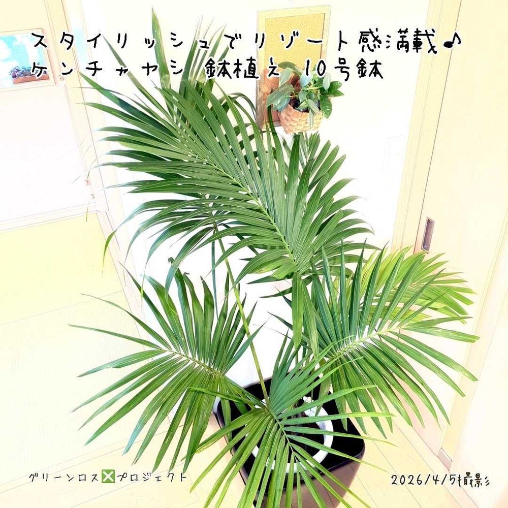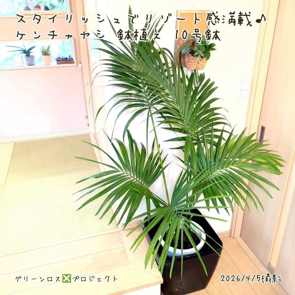 寒さ暑さに強く、アレカヤシに比べて葉が大きく、噴水のように大きく広がった深い緑色の葉はバツグンの存在感!