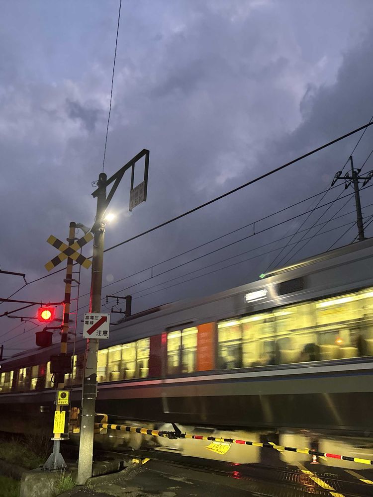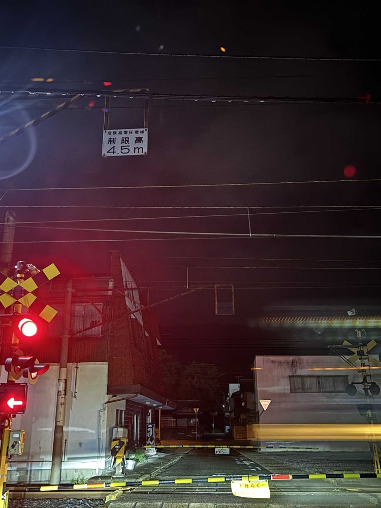 先日の雨の踏切。