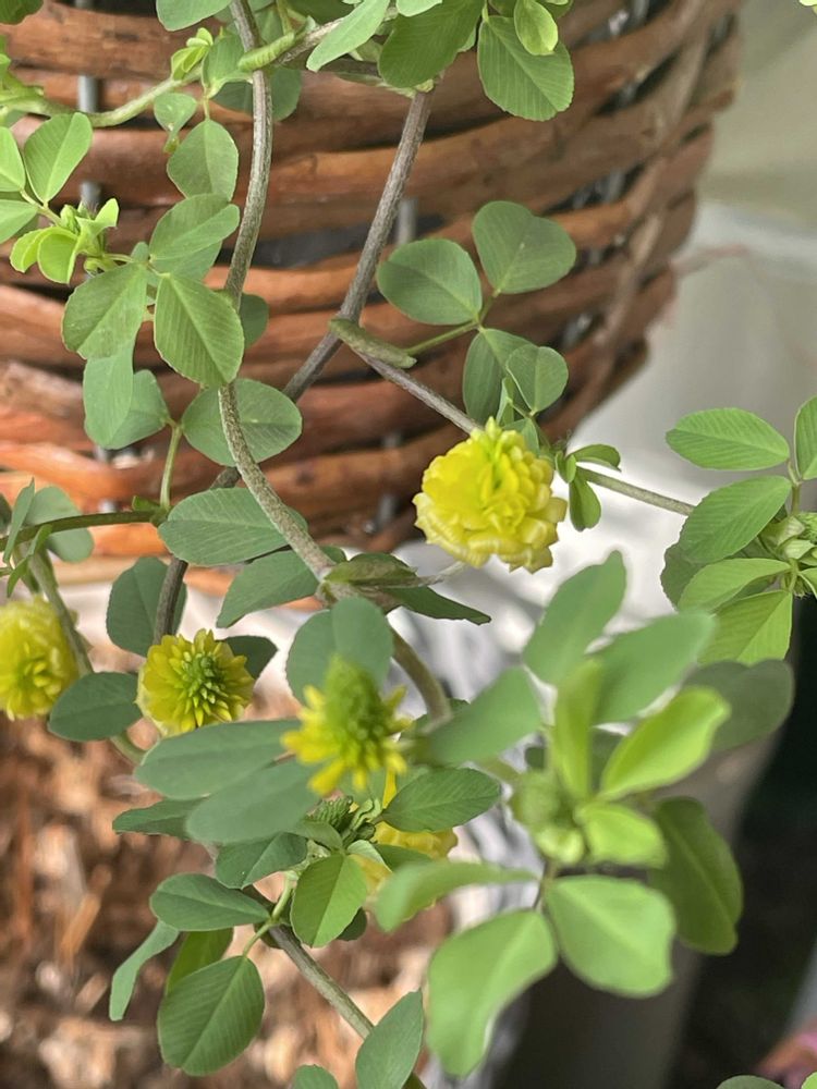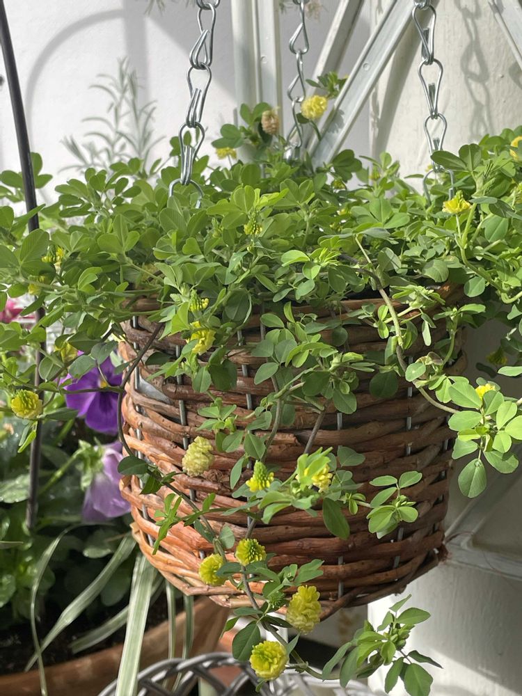 いつもの園芸店で、明るいグリーンの葉っぱとイエローのお花が目を引いて、ハンギングバスケットごとお迎えしました🧺💛
