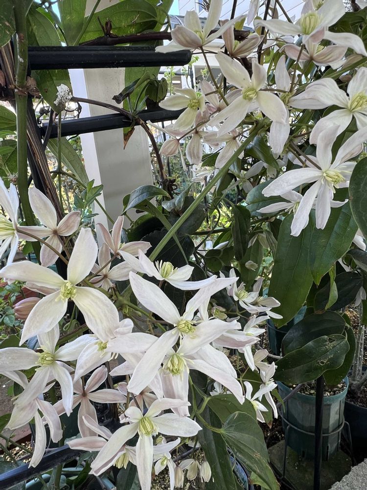 クレマチス アンスンエシスが遅まきながら咲きましたが、年々先祖返りというかセンニンソウの風貌になってきたような気がしてます💦
