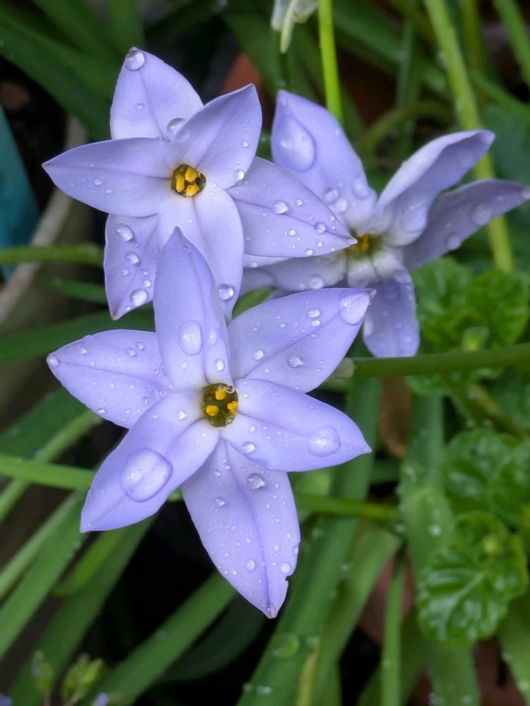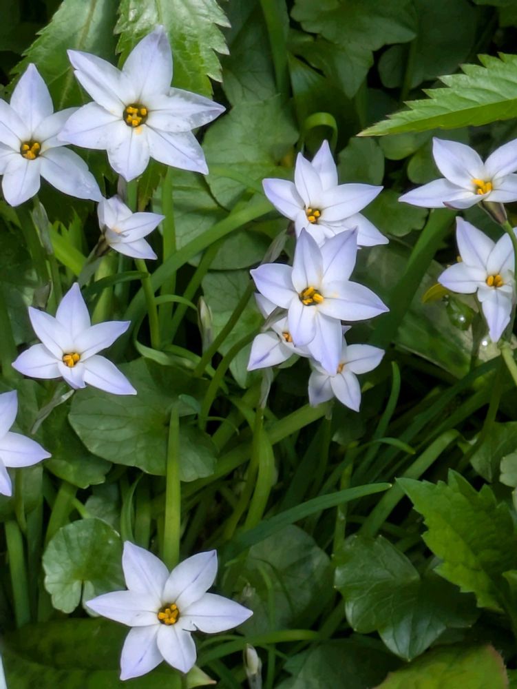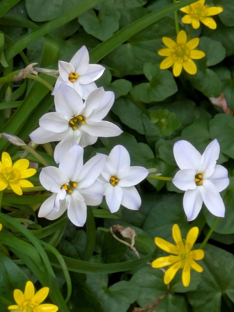 花ニラがあちこちで咲いています。赤いのもあったはずですが、他の花に覆いかぶさられてるみたいで見当たりません☺️💞放っておいてもいつも咲いてくれる元気な花です💞☺️🥰🌞