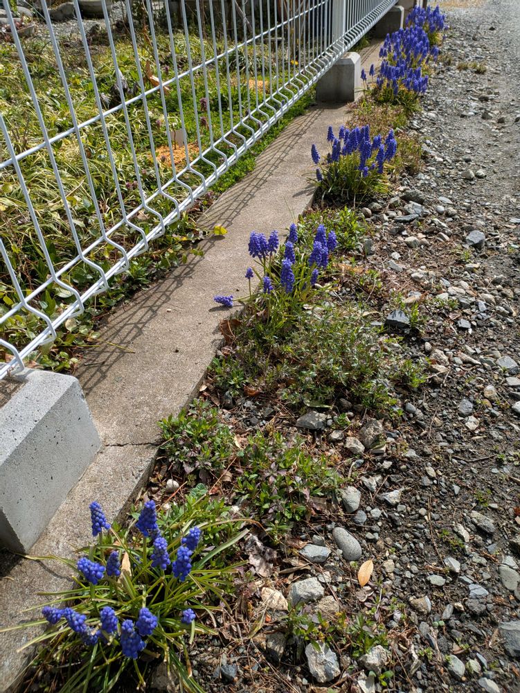 今日から交通安全週間!ムスカリさんも整列( ꈍᴗꈍ)