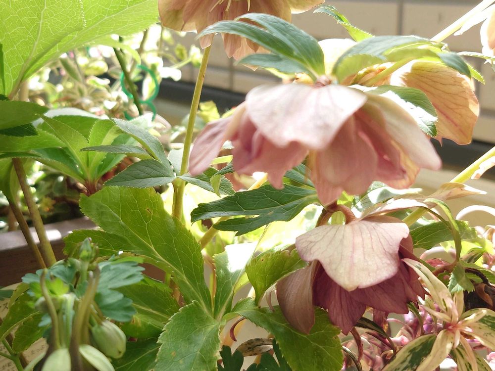 クリスマスローズと寄植えにしました、こういう渋い色のカッコいいお花大好き〜🎶もう少し上を向いてくれたら嬉しいんだけど🤗🌿🥀