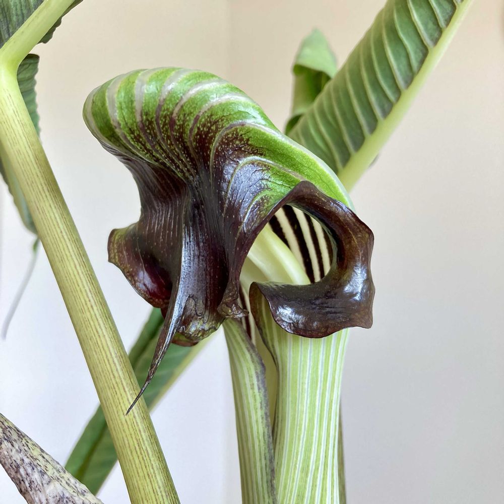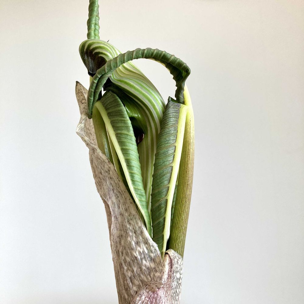 With the sudden warmer weather, the Japanese cobra lily flowers have grown rapidly.