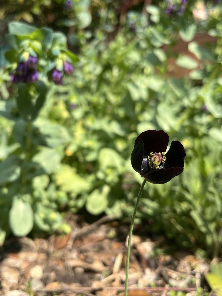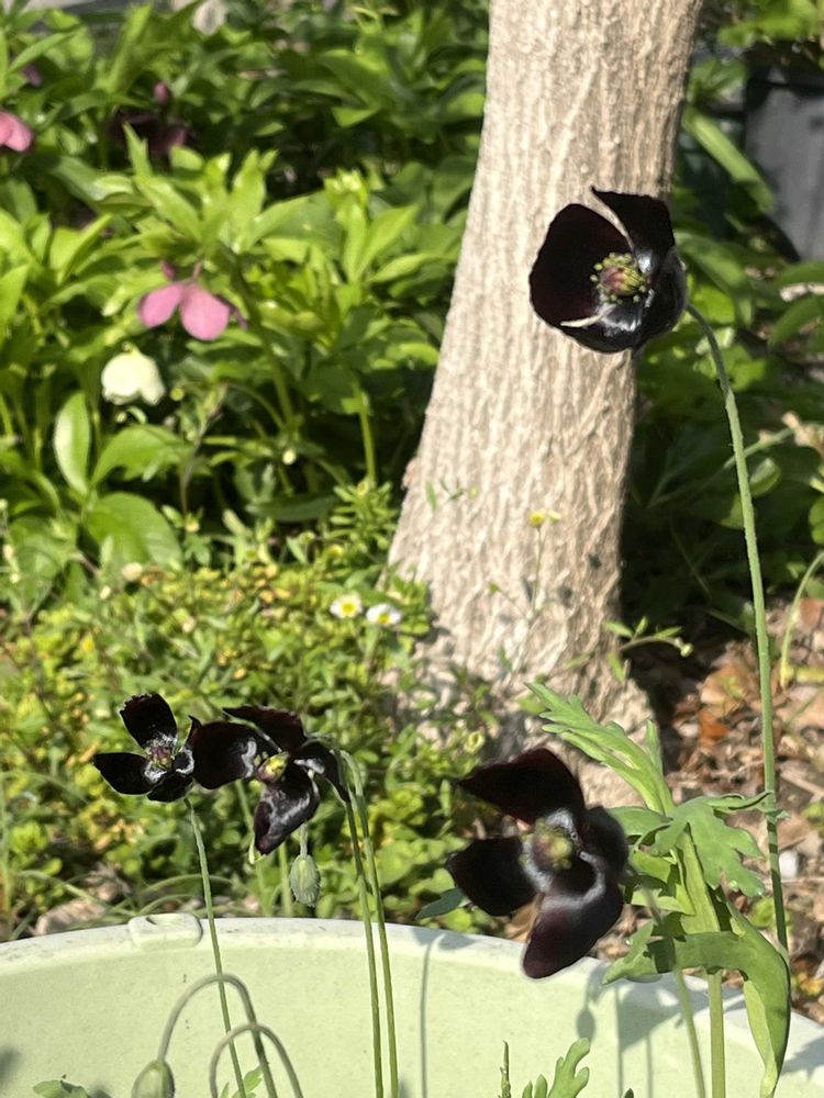 1️⃣ 先日投稿した、通路に出てきたこぼれ種のブラックマジック開花しました🖤 15cmもない小さな株です。