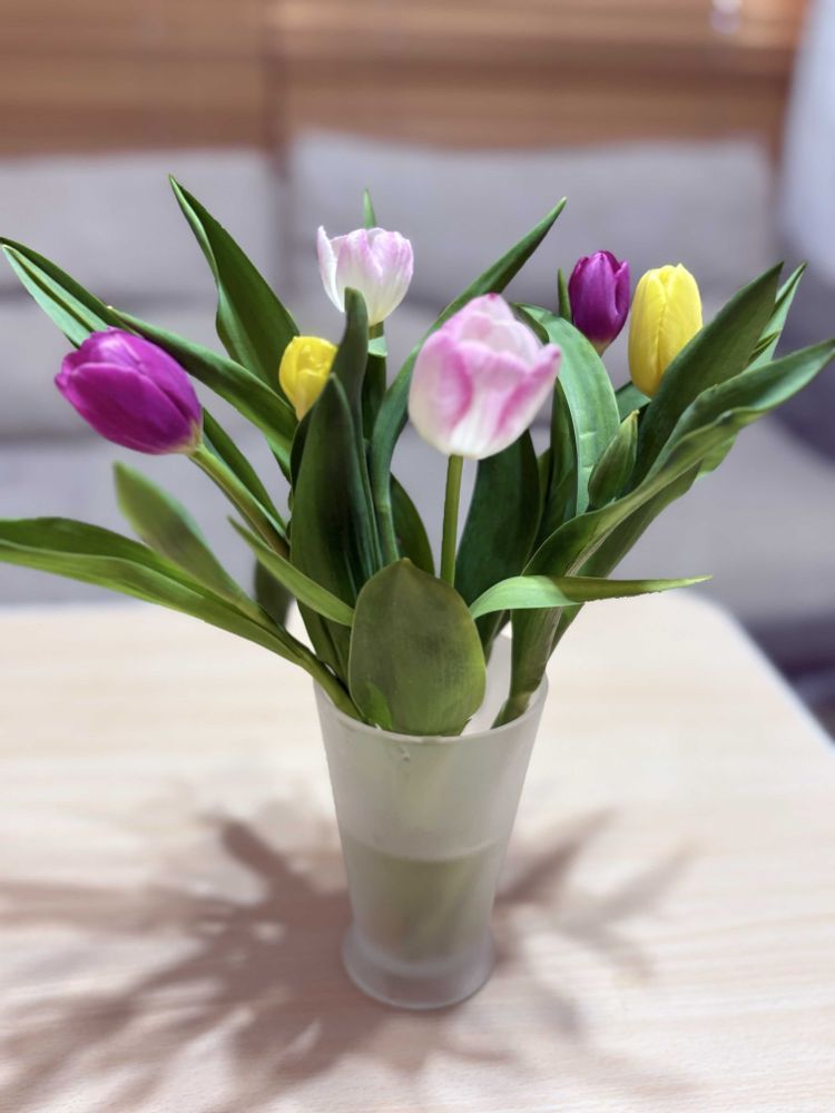 ピンクのチューリップ🌷さんは優しげですね。